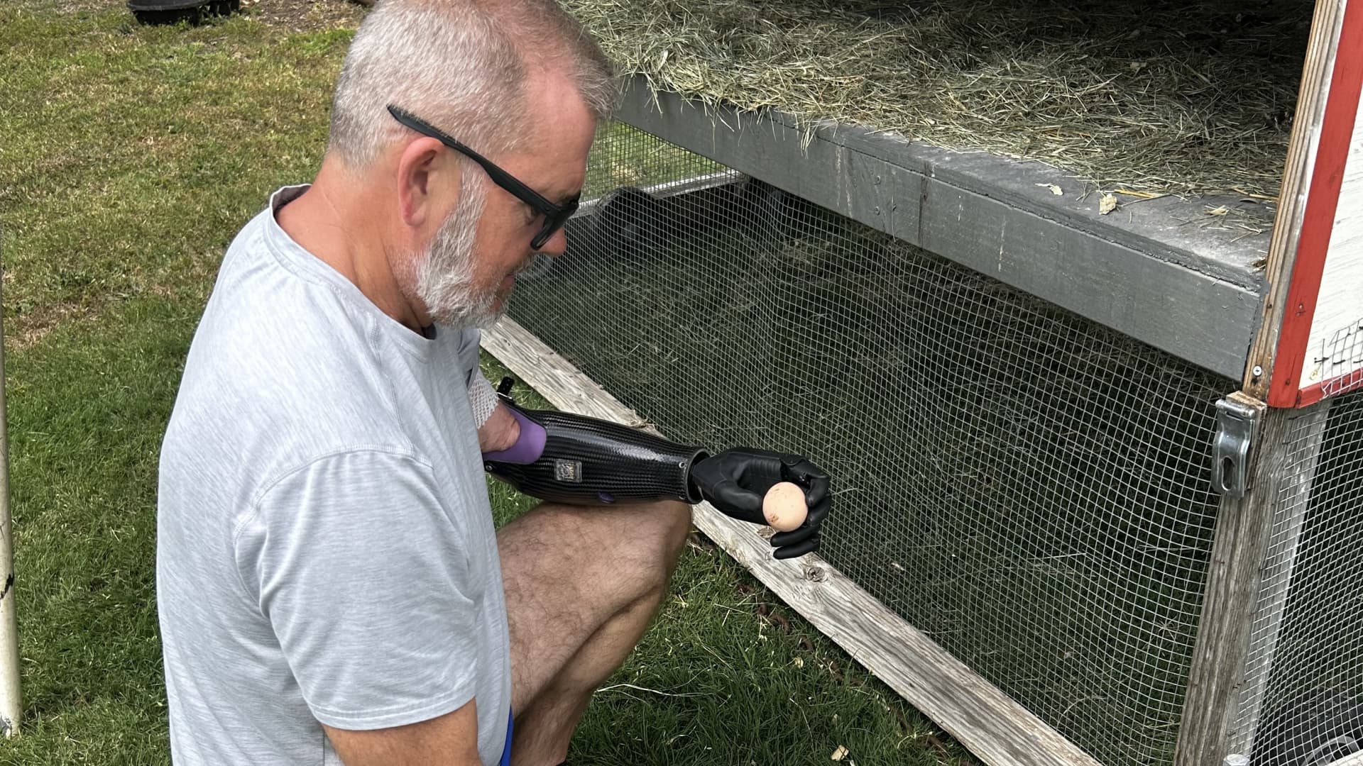 Hitz said the Zeus hand also has a soft grip feature, which means he can use it to pick up eggs from his chicken coop.
