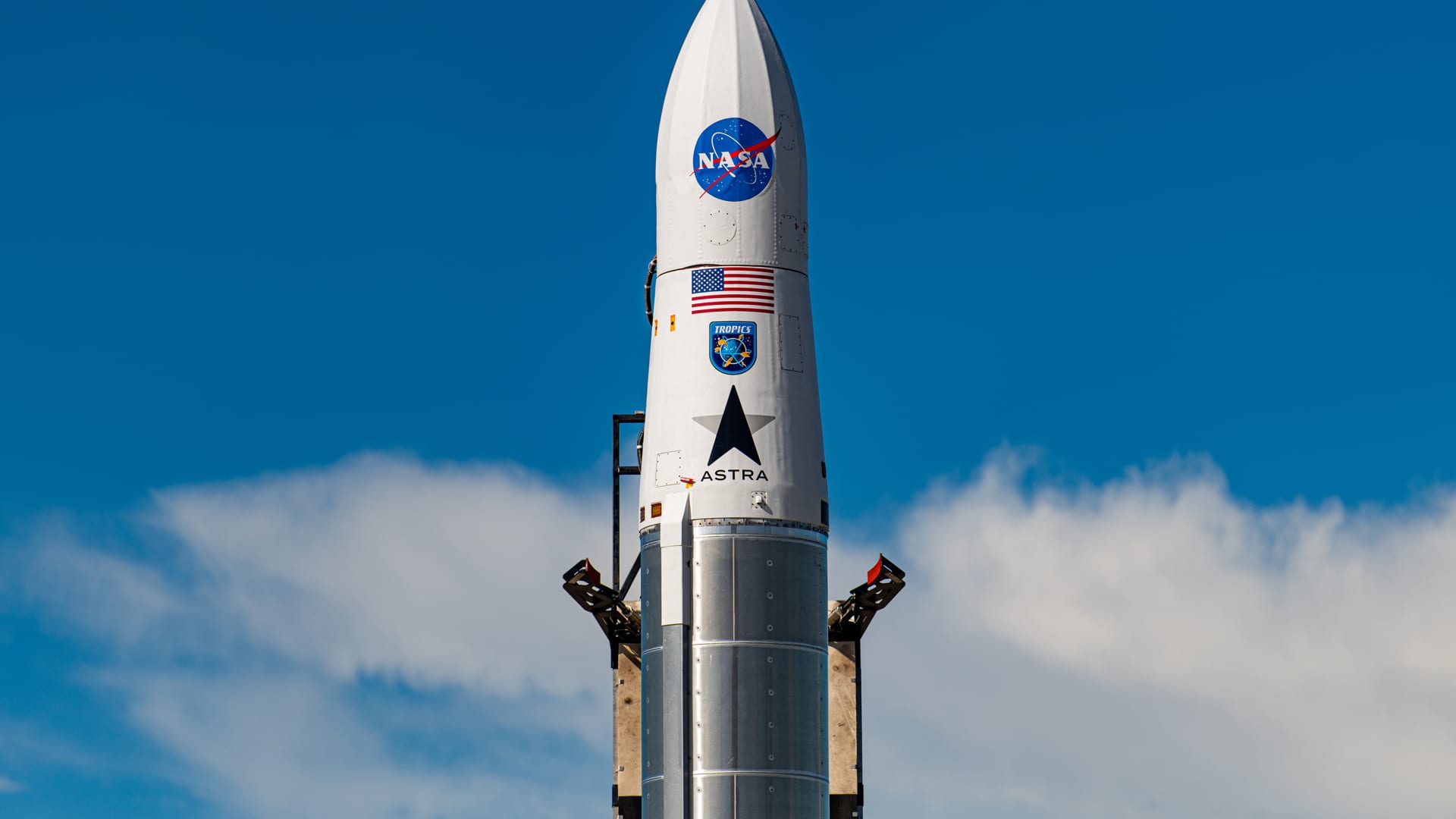 The company’s LV0010 rocket stands on the launchpad at Florida’s Cape Canaveral ahead of the NASA TROPICS-1 mission.