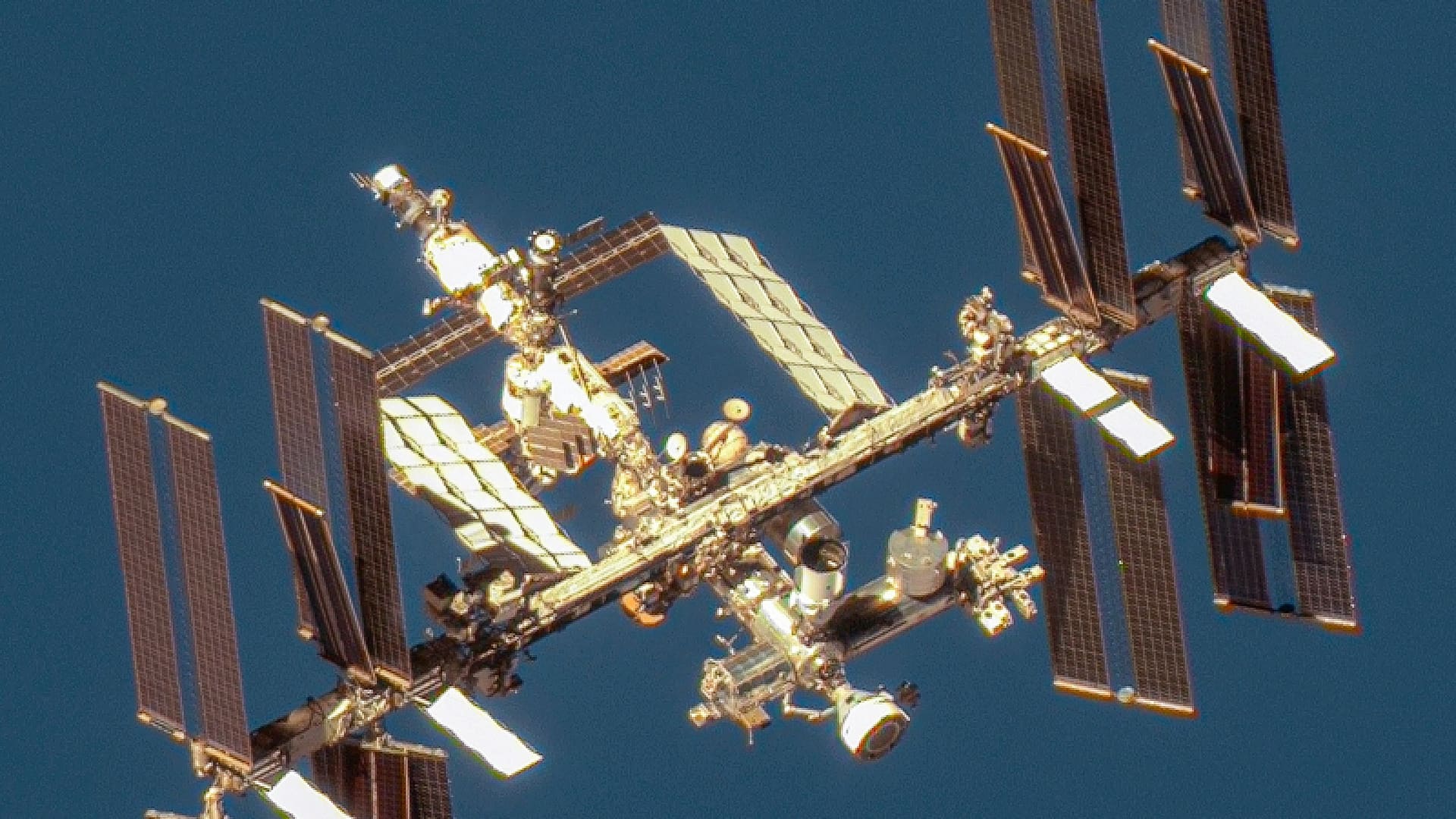 A satellite image shows an overview of the International Space Station with the Boeing Starliner spacecraft, June 7, 2024.