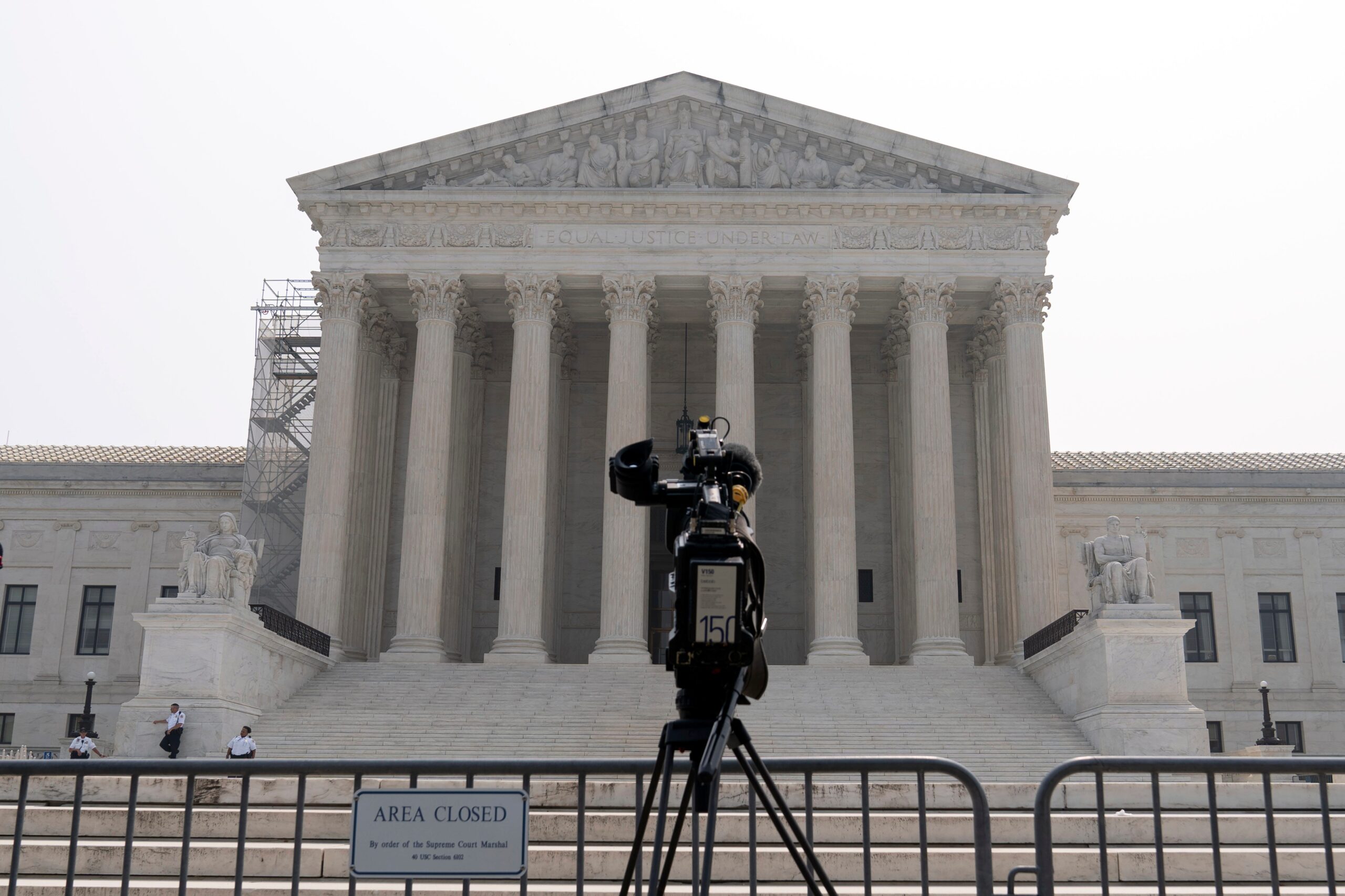 The scene outside the Supreme Court was subdued in the hour leading up to the delivery of the first advisory opinion, with few protesters gathering in the haze and damp morning.